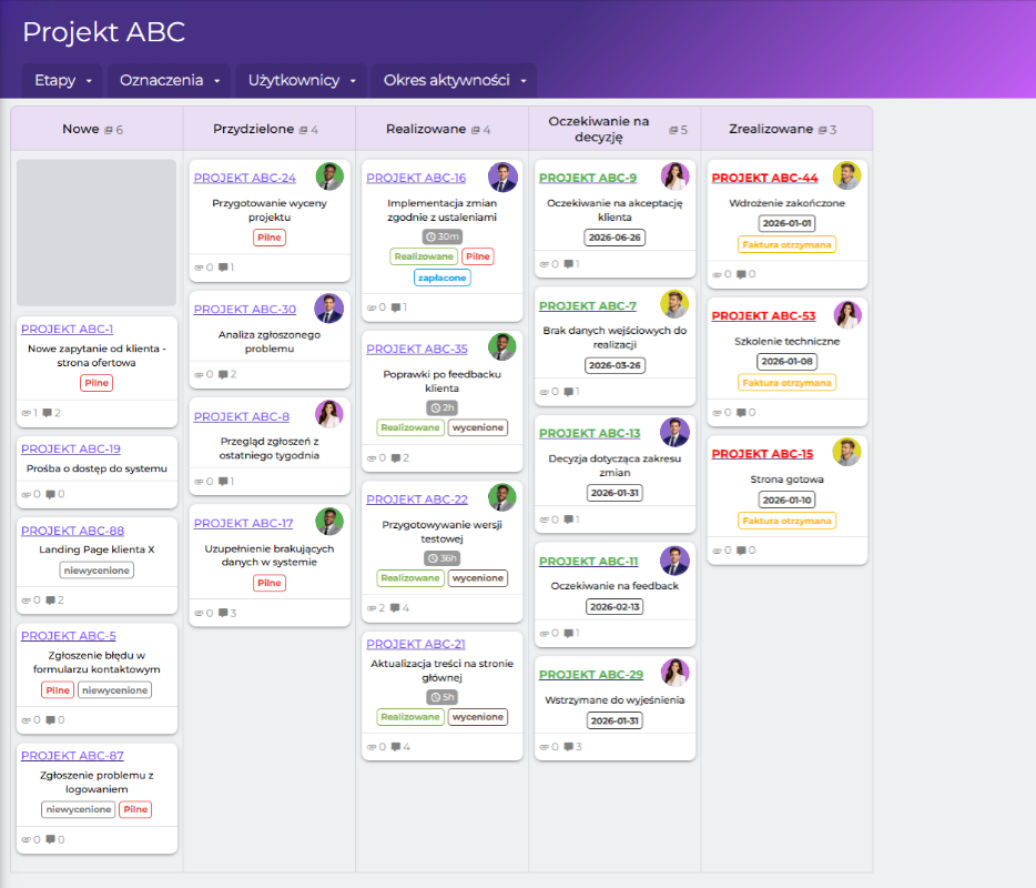 Zarządzaj projektami na Tablicy Zadań i akceptuj urlopy bezpośrednio w przeglądarce. Precyzyjny pomiar czasu zapewnią natywne aplikacje na Windows, macOS i Linux.